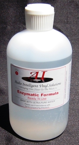 This is the first step in all AIVS multi-step cleaning options. Designed to loosen and dissolve a wide range of contaminants, including protein-based, organic, and release compounds, the Enzymatic Formula requires follow up cleaning with either the Super Cleaner Formula or the Premium Archivist Formula for a thoroughly clean record. Used as an initial cleaner or a soak, the Enzymatic Formula is most effective when the record's surface is completely coated with a film of the product and light brushing and agitation of the product is performed. Using this method for several minutes allows time for the enzyme compounds to loosen and dissolve the contaminants present on the record.
