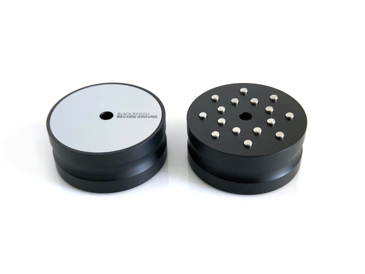 The BR Record Ground is designed to reduce the confusion, disorder and randomness from the record surface during re-play. The ground is designed to have minimal contact with the turntable and requires no additional alignment. Sixteen contacts and a complex array inside the dissipation volume provide the escape path for the energy. Thereby controlling the rate of change of confusion, disorder and randomness during transcription and prior to acquisition of the signal by the cartridge. This activity gives a clearer, quieter and more expansive response with lower interference being taken into signal processing. It is free on the spindle and weighs approximately 195 grams. The outer containment has minimal interface with the energy path from the record.