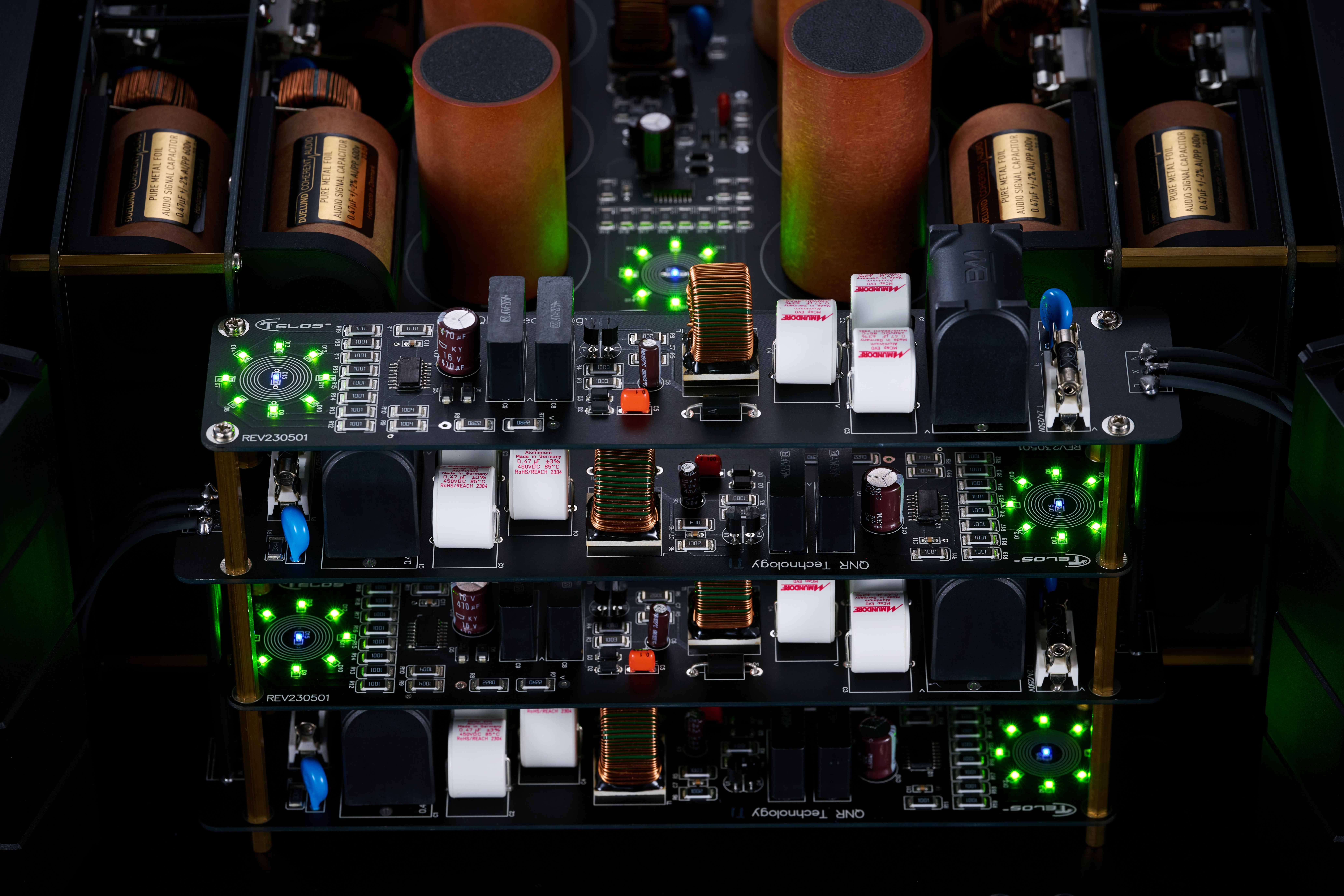Internal module sound tuning is conducted to enhance audio detail and clarity by incorporating the most expensive top-tier capacitors available, German Mundorf and Danish Duelund capacitors, coupled with exclusive 3D-printed damping mechanisms and Oyaide conductors boasting a 102% SSC superconductor rating.
