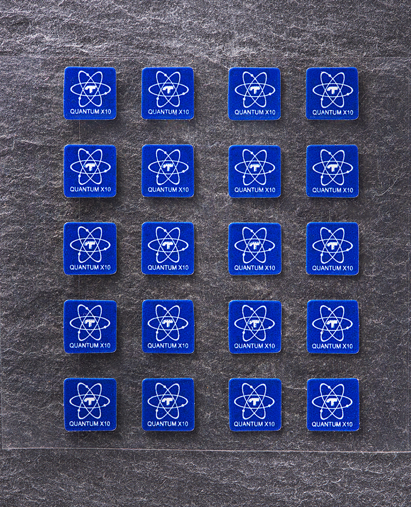 Quantum X10 Blue Stickers contain Yttrium(III) Oxide, Holmium(III) Oxide, Lanthanum(III) Oxide and Dysprosium(III) Oxide, four rare earth minerals. Together with the six original compounds in the red Quantum Stickers, the ten elements form the new Quantum X10 Blue Stickers!